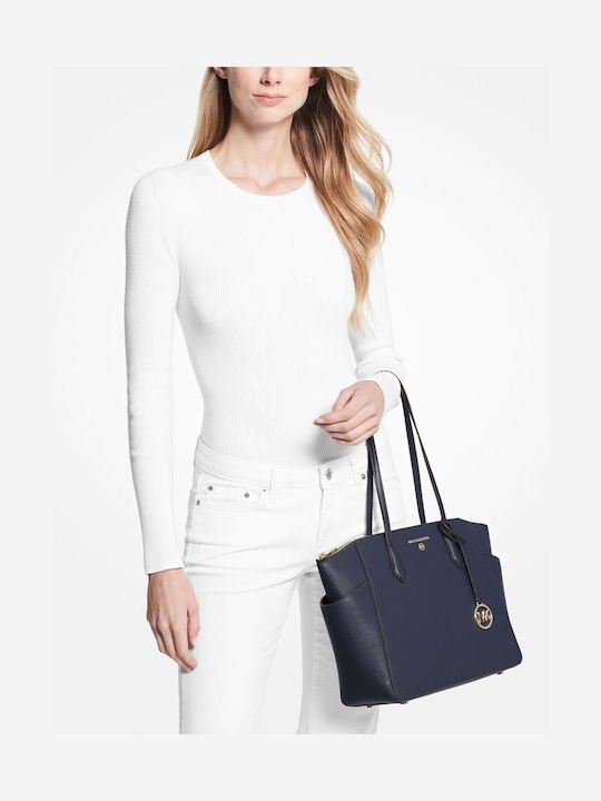 Γυναικεία τσάντα της εταιρείας Michael Kors κατασκευασμένη από δέρμα σε μπλε χρώμα. Ιδανική επιλογή για όλες τις ώρες της ημέρας, μπορεί να περαστεί στον ώμο, αλλά να κρατηθεί και στο χέρι