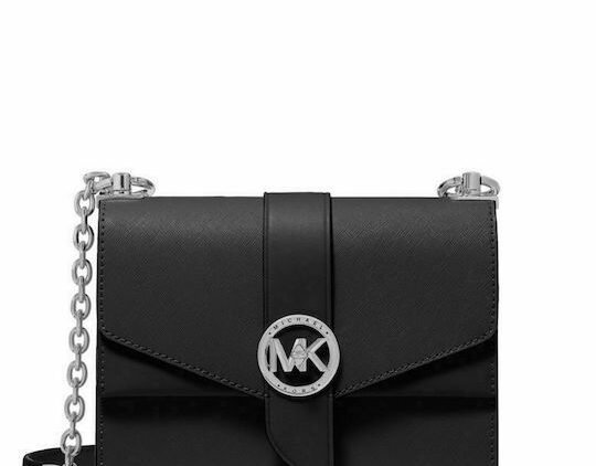 Michael Kors Greenwich Small Δερμάτινη Γυναικεία Flap Bag Χιαστί Μαύρη